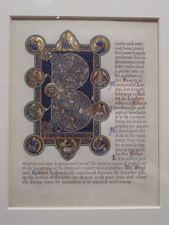 Die Ausstellung war klein, aber sehr interessant. Sie hat Ausschnitte aus alten mittelalterlichen Schriften gezeigt, die das Museum Anfang des letzten Jahrhunderts als Anschauungsmaterial gekauft hat. Diese Ausschnitte sind wirklich rausgeschnittene Stücke! Anscheinend ist das oft gemacht worden.