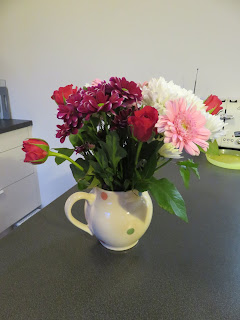 Wir haben lieben Besuch von San, Dave und Pip gehabt. Sie ware am Samstag hier und haben den Mädchen wunderschöne Taschen mitgebracht, die die talentierte San selbst genäht hatte. Dazu gab es noch einen bunten Blumenstrauß. Wir haben zusammen gegessen, viel geredet und die Mädchen haben Spiele gespielt. Es war so schön, sich endlich richtig kennenzulernen, nachdem wir jahrelang per Telefon, Briefen und Email miteinander kommuniziert hatten.