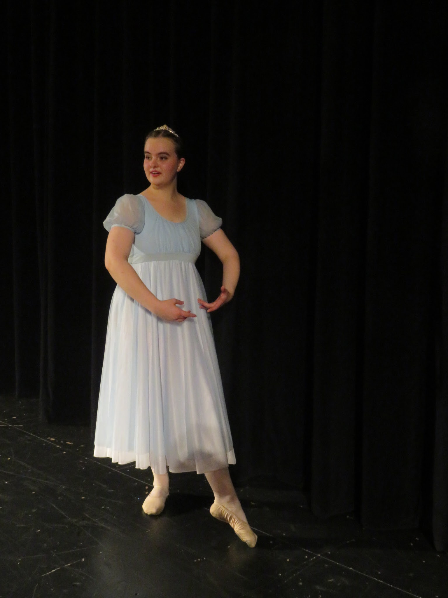 The first part of the show were individual dances of the different dance levels. Veronika is on the left and Flora is in the second row and you cannot see her. Both girls are in the highest level class.