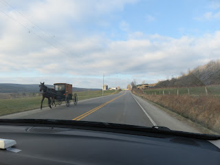 This morning, we left around 8:00 a.m. to take Leo to the vet. While driving through the countryside, we passed an Amish buggy.